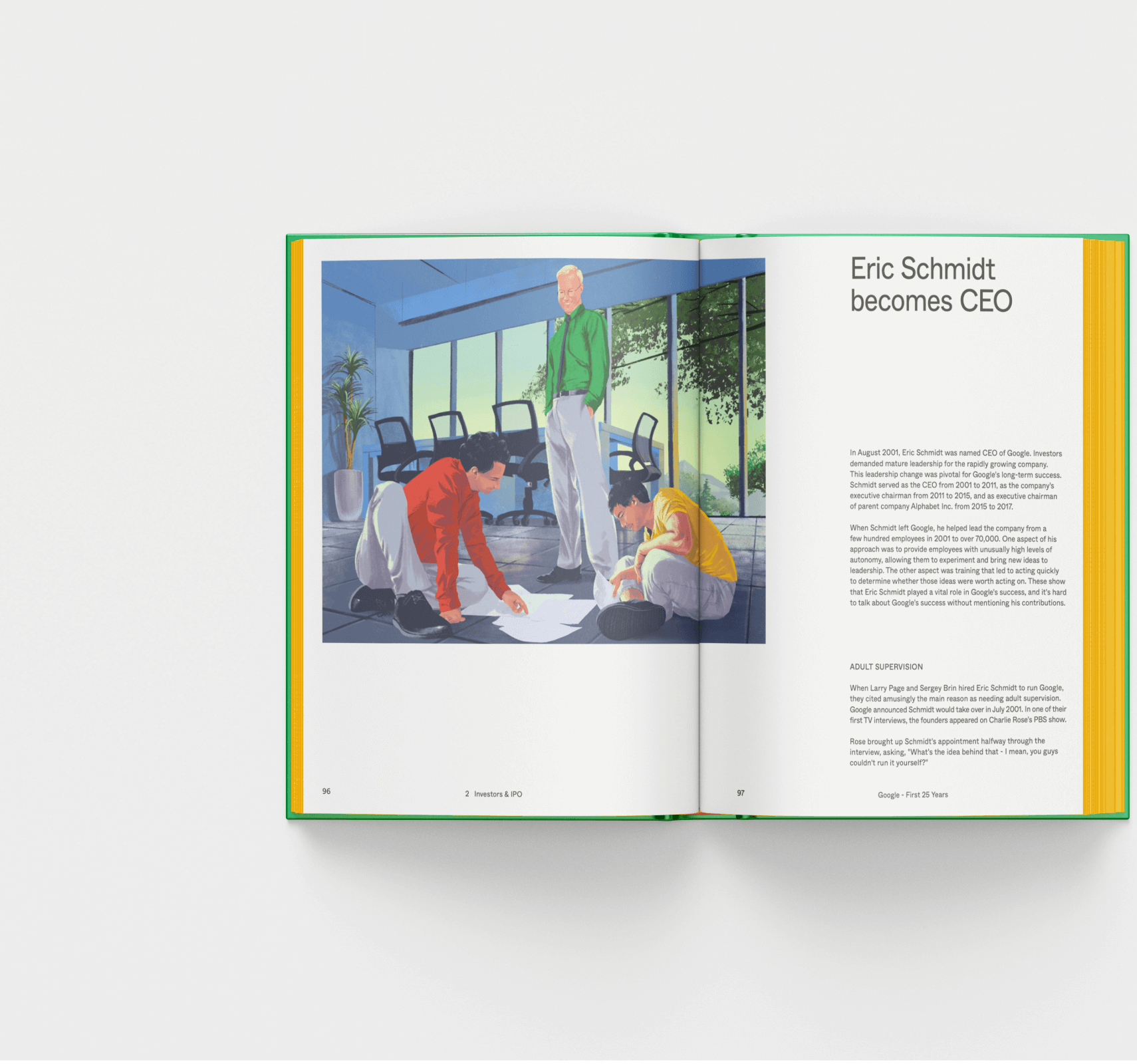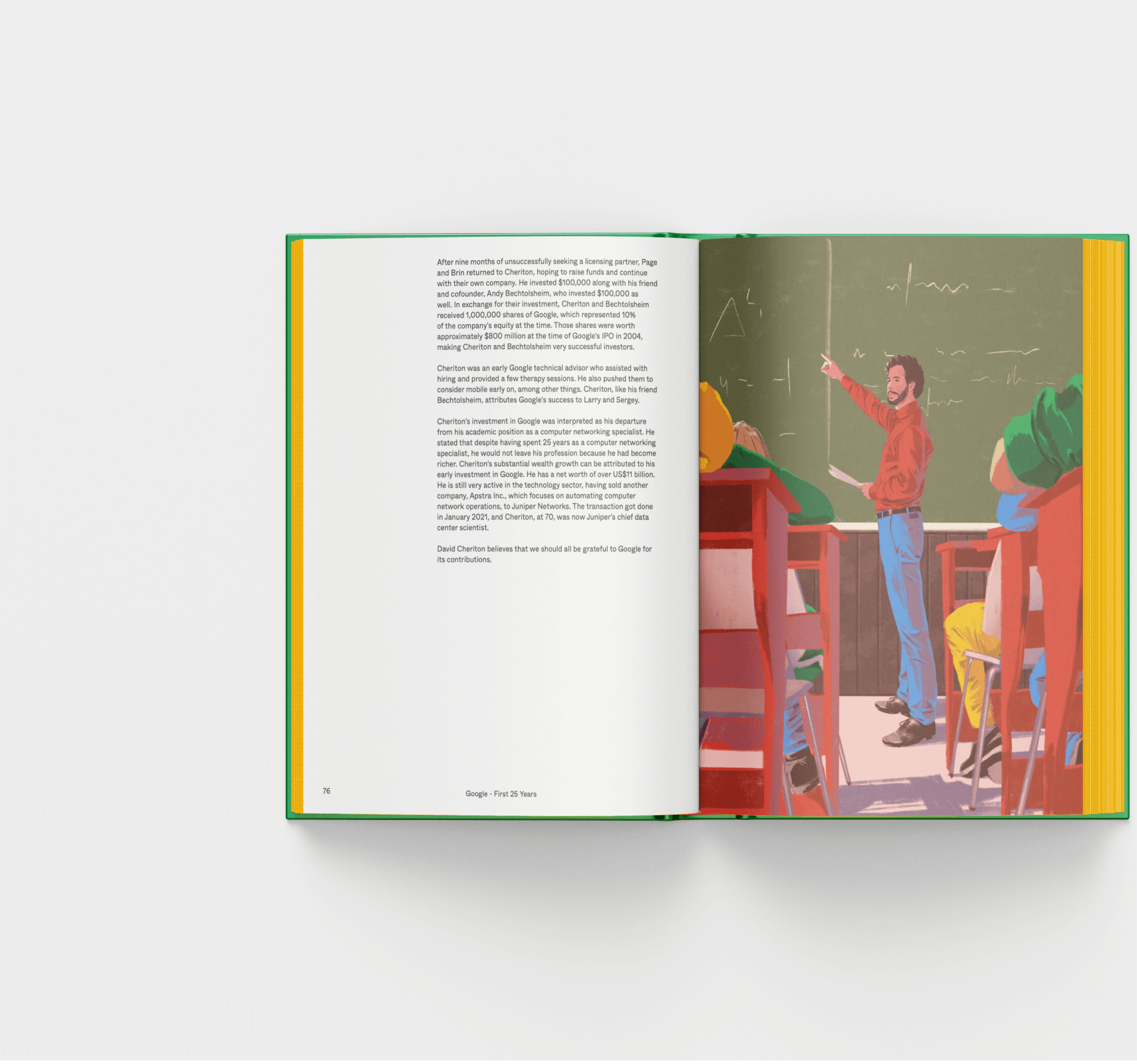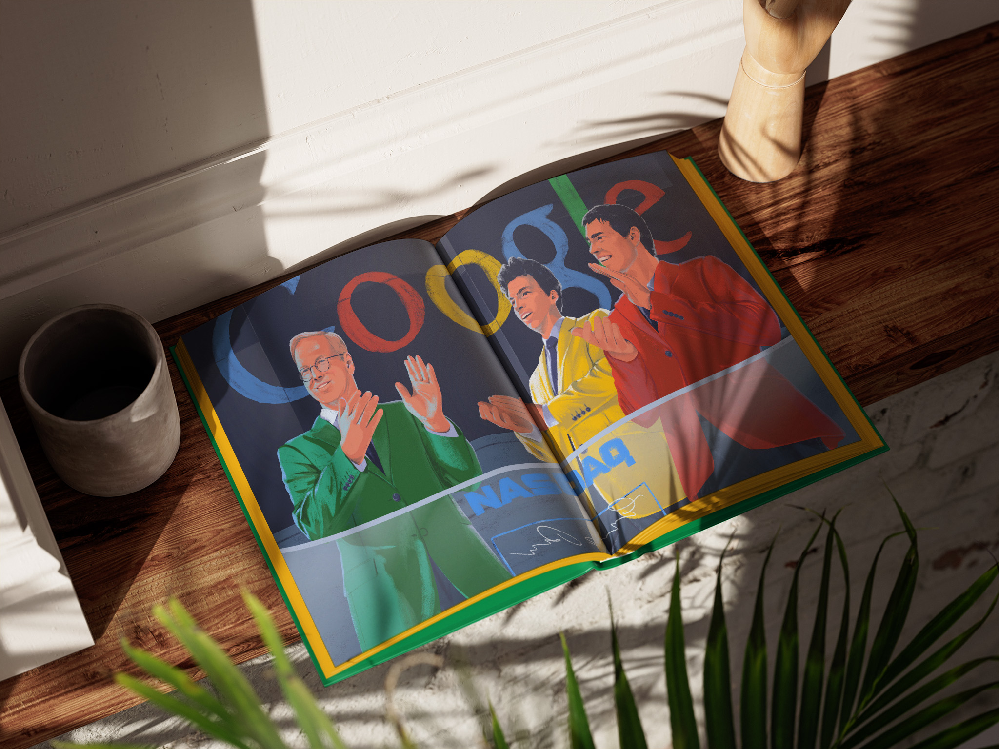 The talented and award-winning Vivi Campos was invited by daMaia to paint unique illustrations. These art pieces add a personal touch and bring Google’s stories of to life. Each illustration was crafted with care and attention to detail, making Google - First 25 Years a truly one-of-a-kind book.